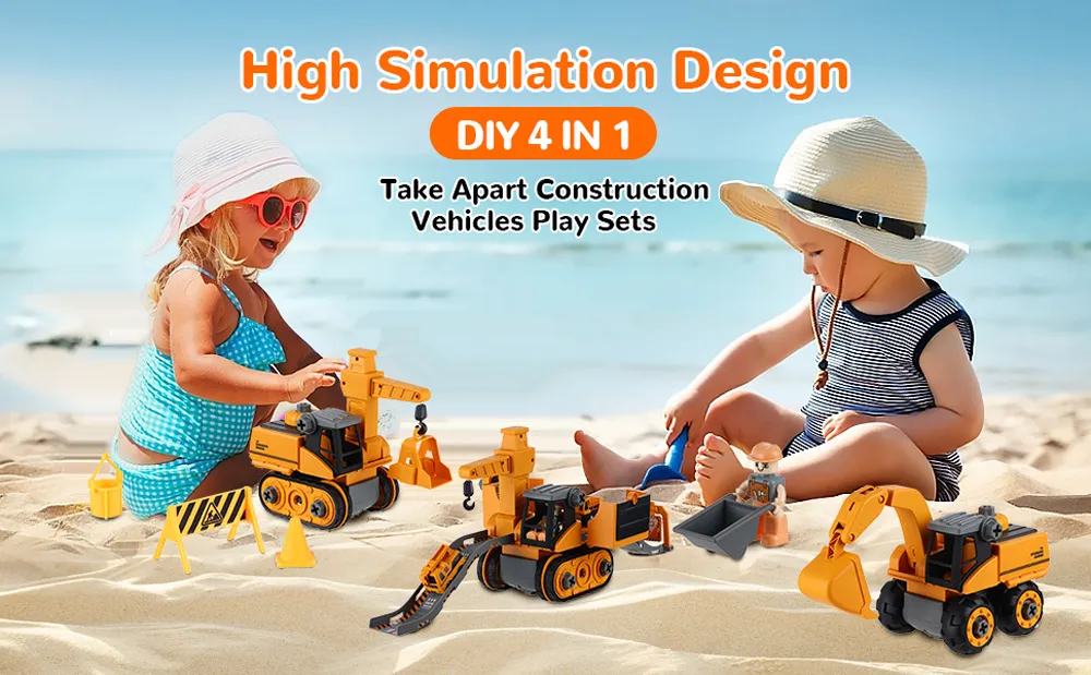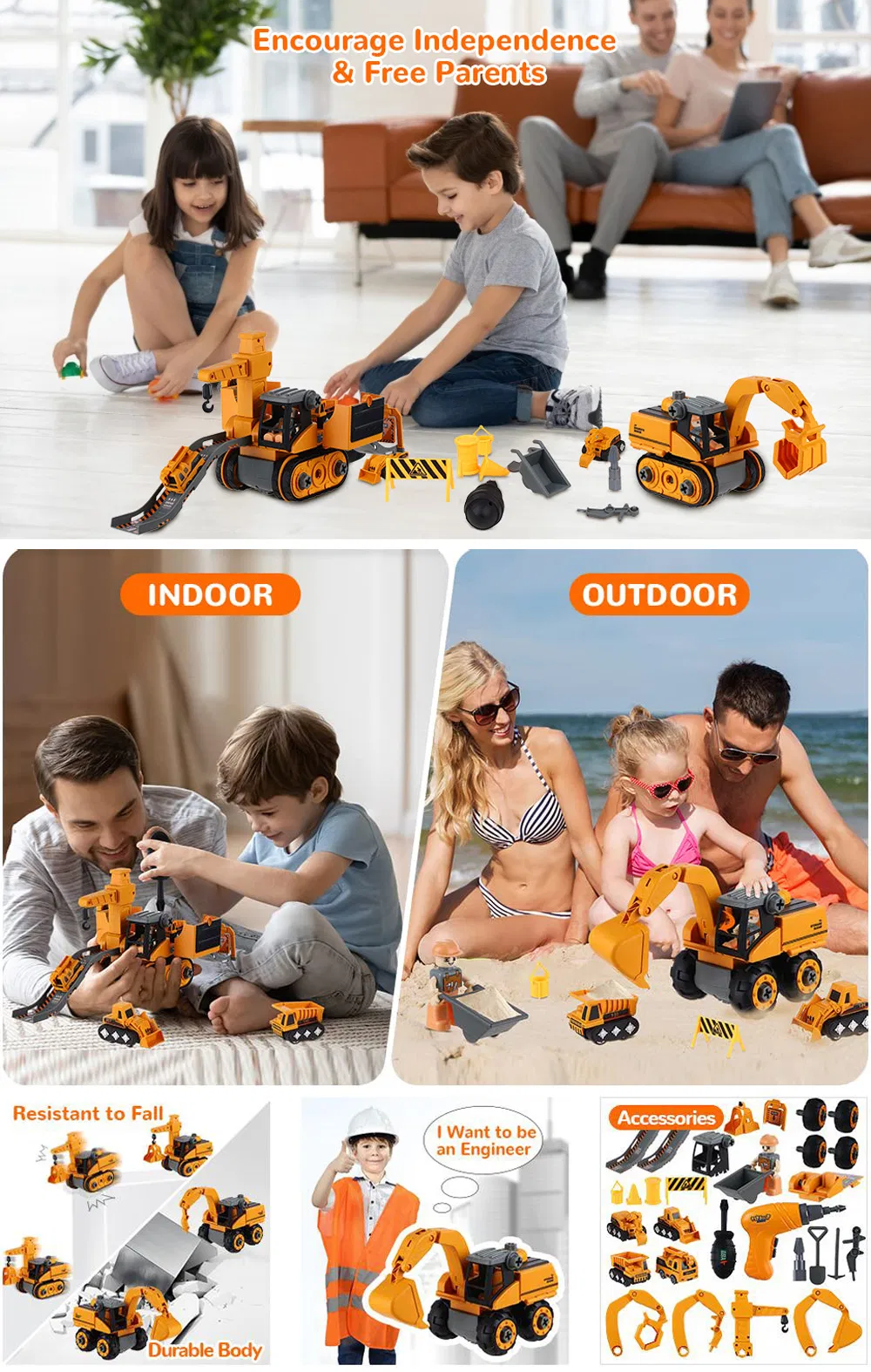 STEM Toy Building Truck Toys Gifts for Boys Girl - 4 in 1 Play Trucks Set